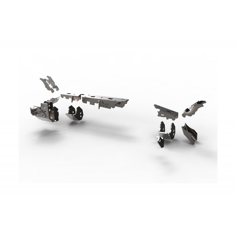 DANA 44 első tengely erősítések Jeep Wrangler JK Rubicon 2007-2018 számára. Ezenkívül: megerősített Panhard rúd rögzítés, megerősített kormány stabilizátor rögzítés és megerősített alsó lengőkar rögzítések beépített burkolattal.