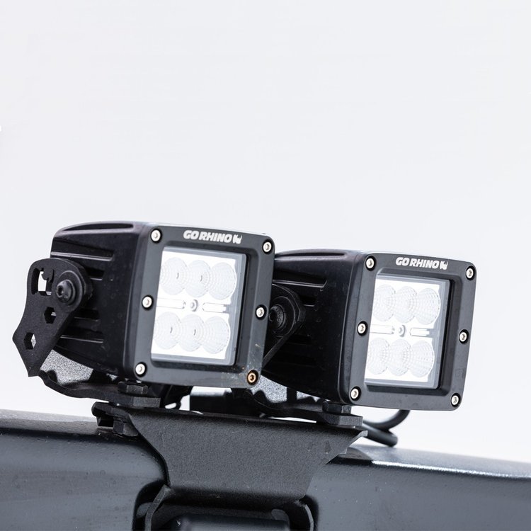 Go Rhino A lámpatartók lehetővé teszik a kemény felső hátsó üvegfedél pántos lámpatartók akár két 3 “x3” kocka felszerelését is . LED-es lámpák a Jeep Wrangler JL hátsó részén az extra hátsó világítás érdekében