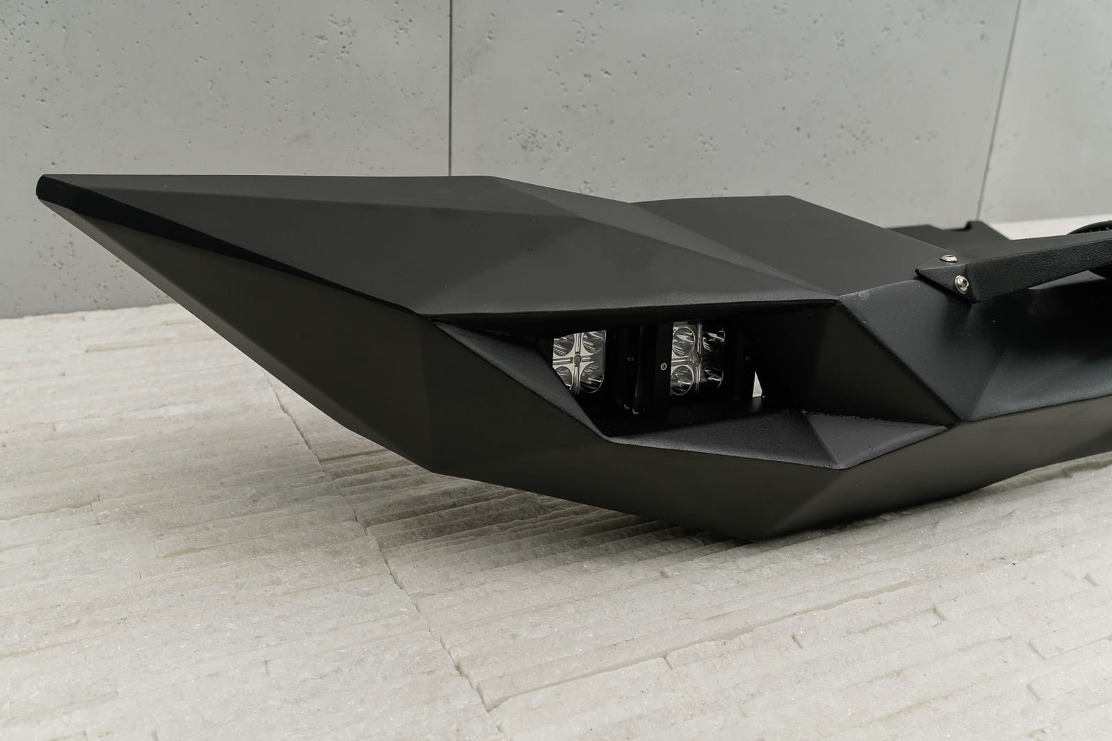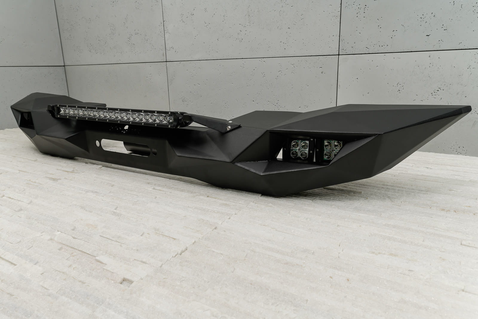 A lökhárító 20x10W (100 W) LED-es világítással és további LED-es munkalámpákkal van felszerelve – 4 db, egyenként 12 W-os. A lökhárítóra csörlőt is fel lehet szerelni – külön hely van neki, a készletben a csörlő acéllemeze is található.