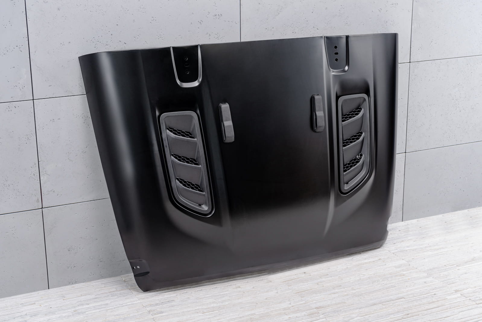 A termék kiváló minőségű acélból készült, festésre előkészítve, melynek köszönhetően személyre szabhatja az autó formáját és egyedi arculatot adhat neki. A készlet tartalmazza a motortér fedelét és két motorháztető nyílást. Beépítés a gyári motorháztető helyére, módosítás nélkül. Teljesen új termék, eredeti csomagolásban.