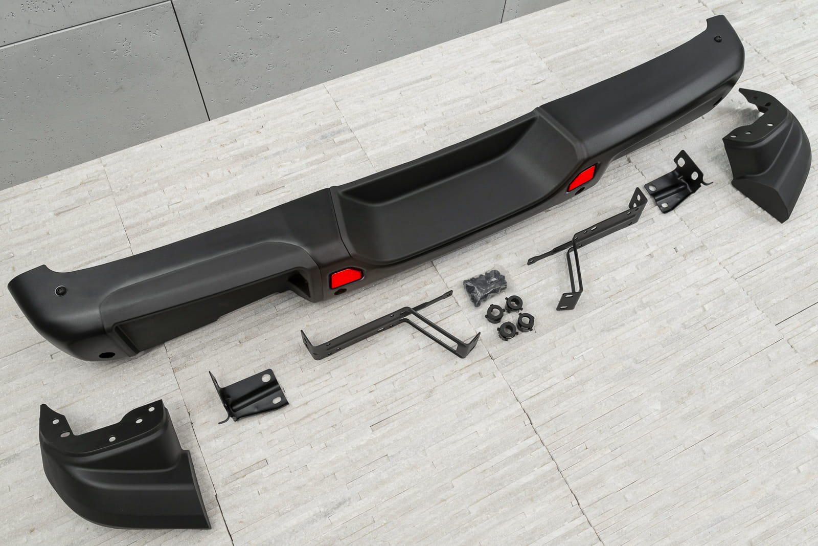 A készlet tartalmaz egy hátsó lökhárítót és rögzítőelemeket.