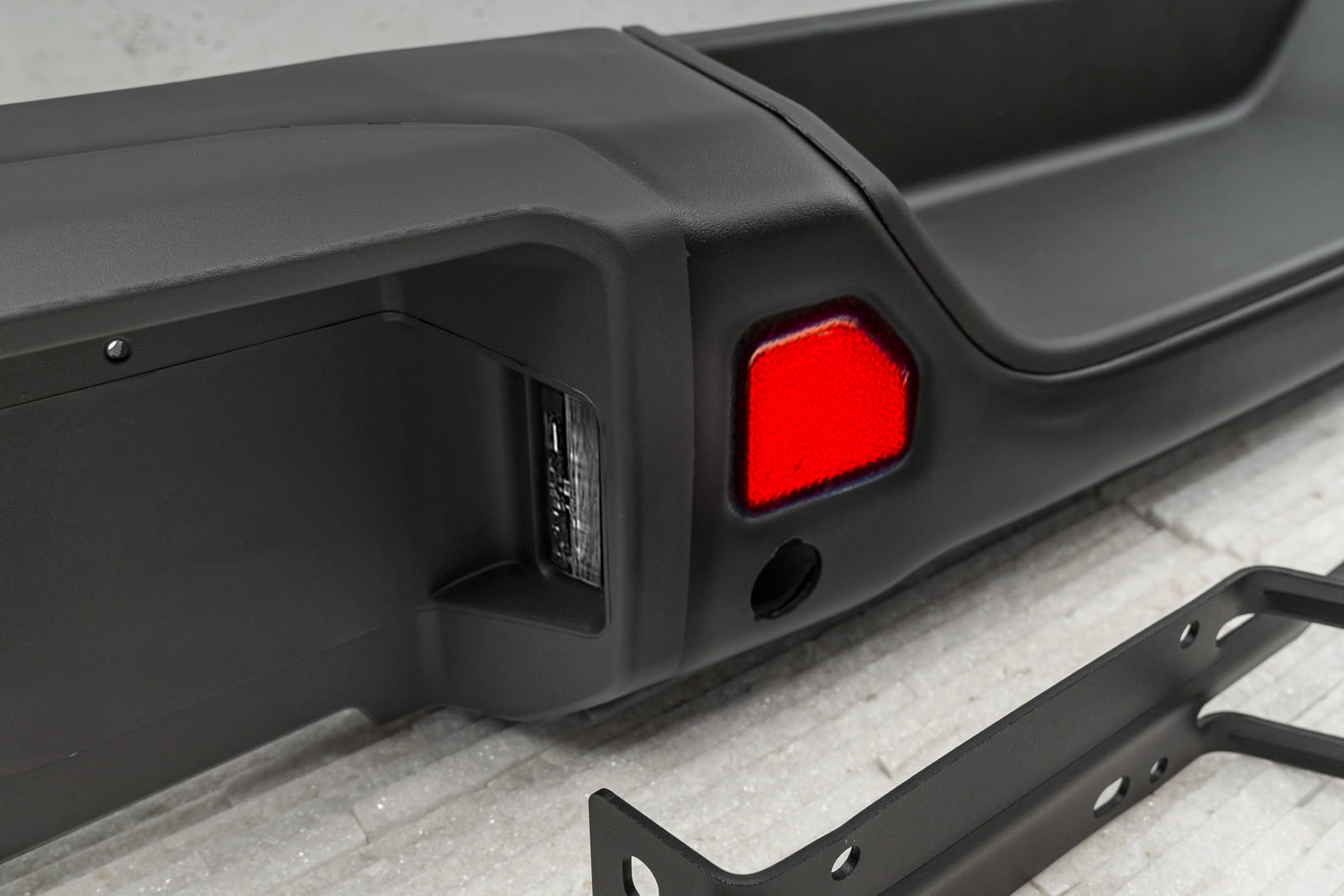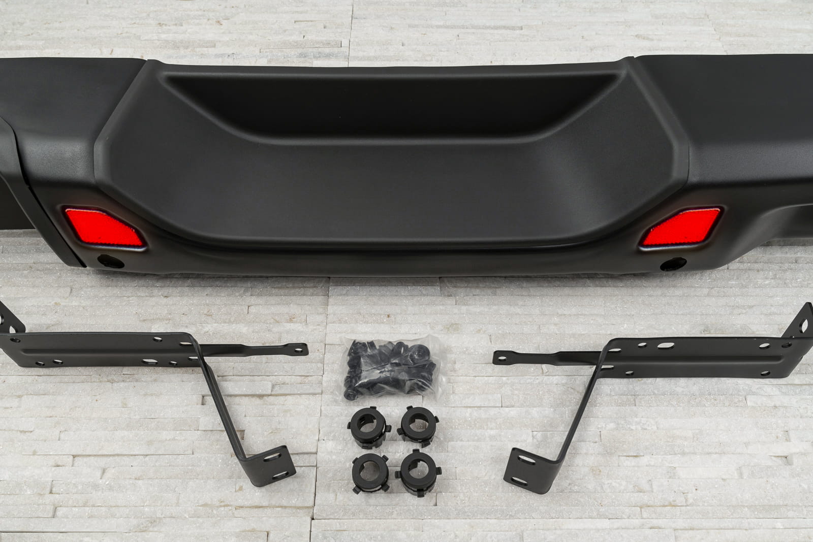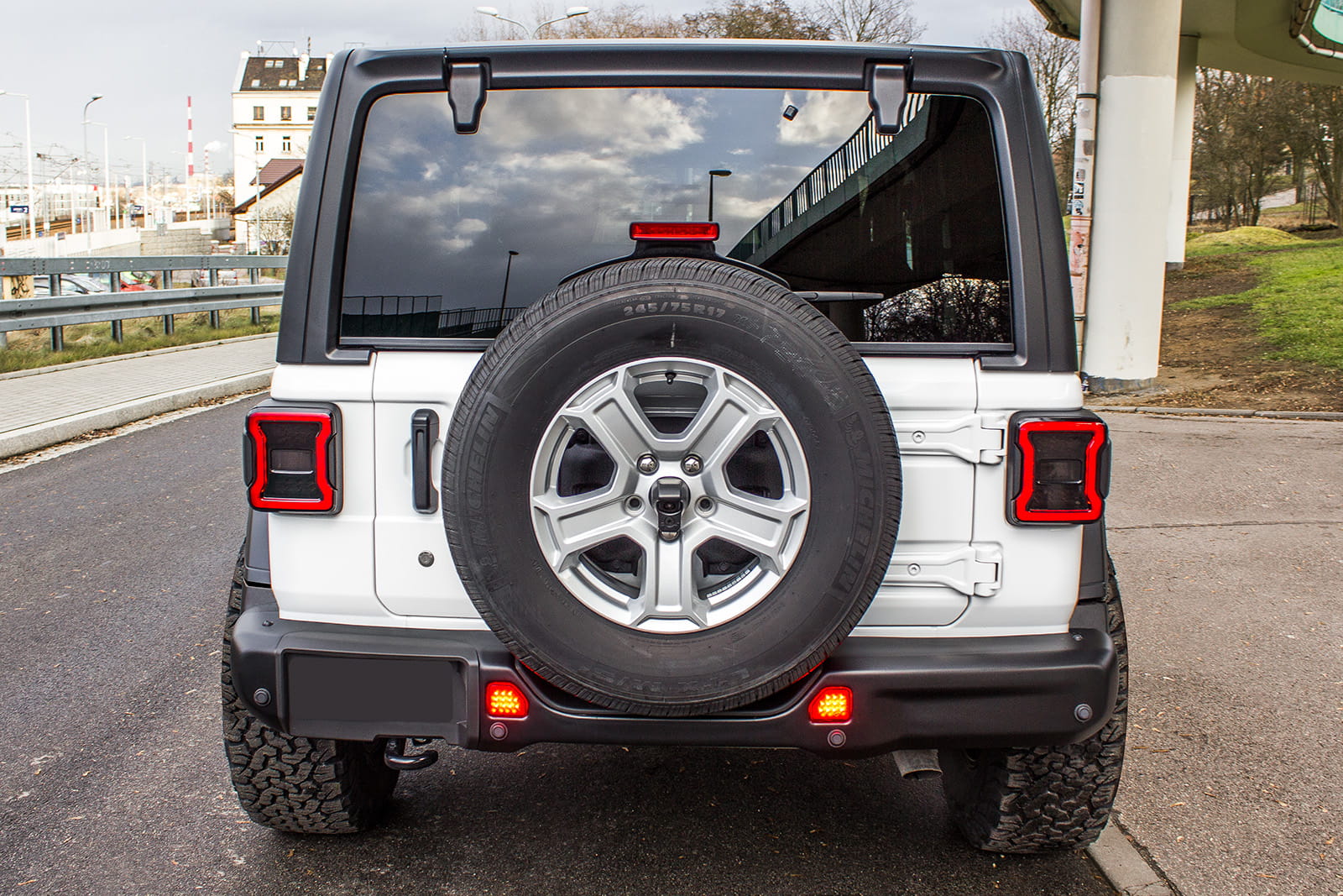 Masszív konstrukció, kompromisszumok nélküli karakter és sportos hangsúly – ezek a Rubicon védjegyei. A formatervezése ihlette lökhárító fokozza a Wrangler JL terepjáró szellemét. Praktikus funkciója mellett a RUBICON lökhárító lehetővé teszi, hogy lenyűgöző stílust teremtsen Wranglerének. A lökhárító kialakítása megvilágítja a jobb oldali rendszámtábla területét. Ezenkívül a lökhárító készlet tartalmaz rögzítőelemeket a parkolóradarhoz.